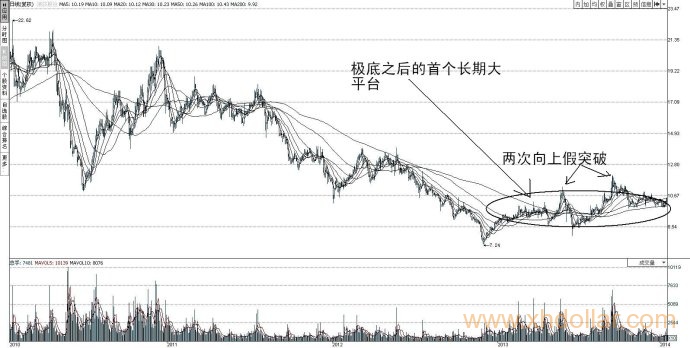 其实呢,不管它股价波动上上下下的,只要形成大致的横向波动,然后把股价拉长了看,最好是长期大全景的,就比较容易形成平台的感觉。如果只放大看几个月的,很可能是波涛起伏,这种叫看惯了蚊子,看到苍蝇也觉得大,做股票要大气一点,要有一览众山小的胸怀与视野。
