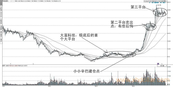 正常来说,没有连续涨停的超强表现,就远没到大量出货阶段,以前的我,是不会卖的。我会等到它在22元上下形成半年以上的平台,然后再次突破,暴涨拉升一倍到下一个箱顶(大概40元左右)时卖。