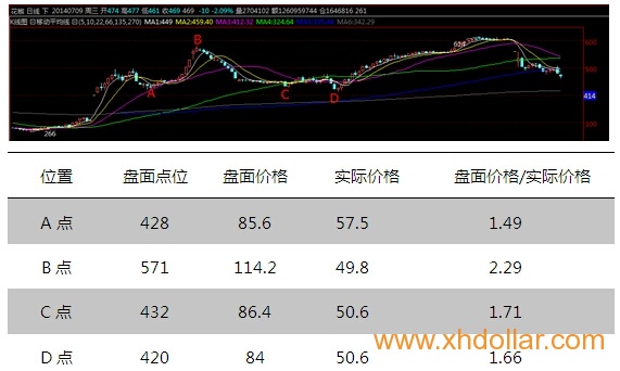 如上图所示情况,我们可以很容易看出,盘面在整个走势过程中均处于溢价发行,这对于那些参考首个合约进行交易操作的参与者损失尤为惨重。这种高溢价的盘面走势使得盘面损失了一大批参与者。这也是当前第三个合约开始过后参与者较少的一个重要原因。