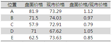 笔者截取盘面5个点与现市价格作对比,具体情况如下: