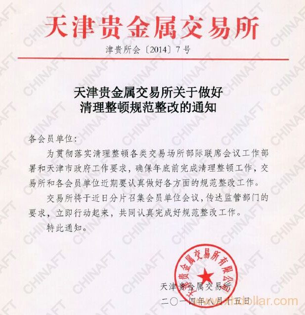 近日,现货岛从知情人士处获悉,天津贵金属交易所于发布了《关于做好清理整顿规范整改的通知》。通知全文如下:
