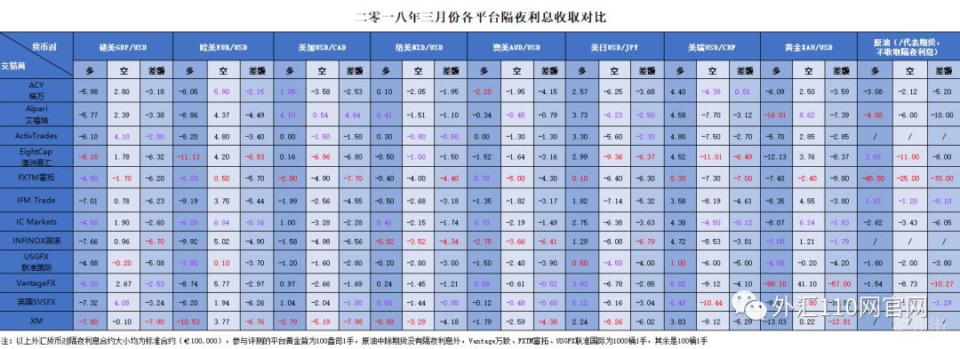 注意:当天的隔夜利息评测仅作为大家的一个参考,不能代表交易商每天收取的隔夜利息标准。