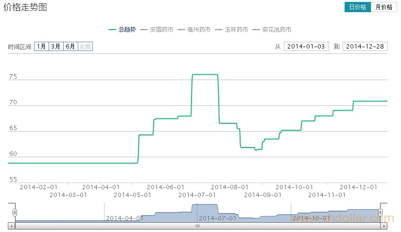 以下为宁夏枸杞280粒2014年以来的价格走势图: