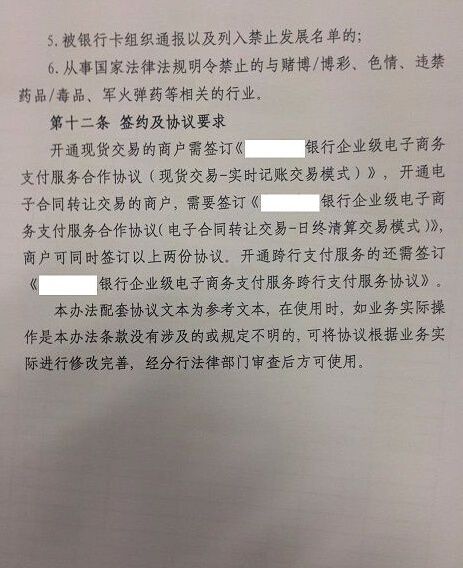 在“商户禁入”条款中,包括商户为第三方支付机构的等。