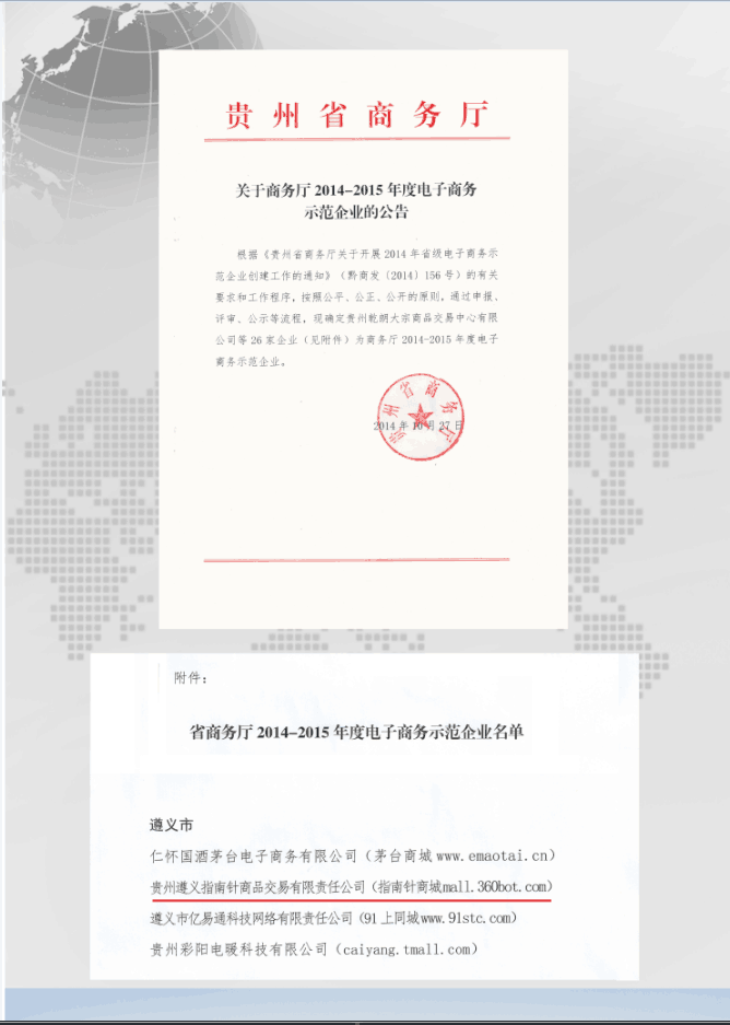 2014年10月15日被贵州省商务厅评为“2014—2015年度贵州省电子商务示范企业”