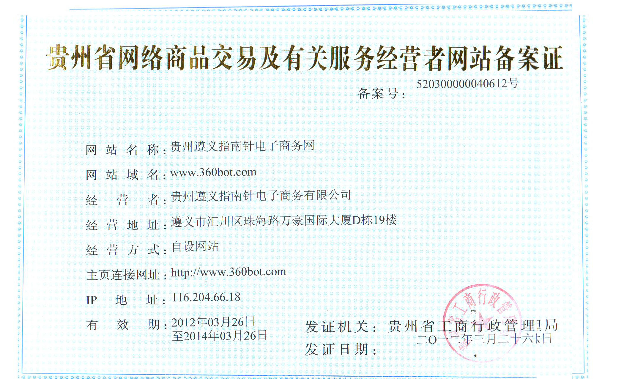 1、贵州省网络商品交易及有关服务经营者网站备案证