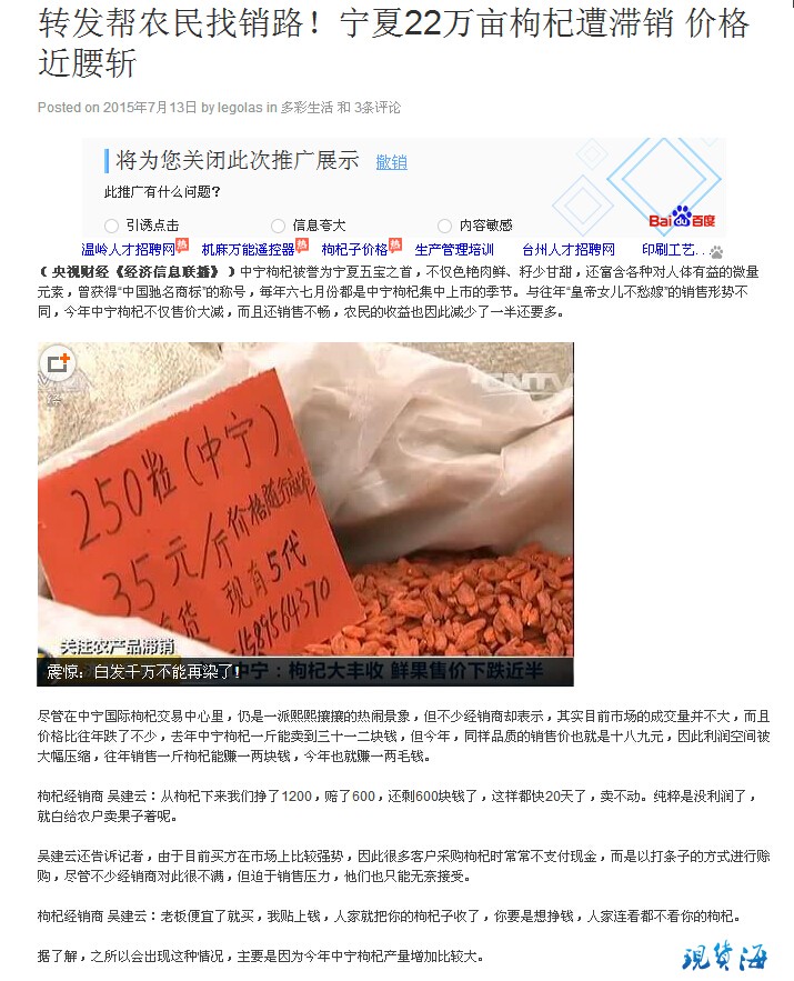 随着各地枸杞相继上市,全国各大媒体都在争相报道,帮助农民解决枸杞滞销问题。