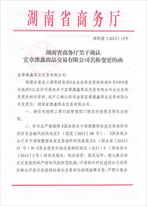 湖南省澳鑫商品交易市场是经湖南省人民政府商务厅批准设立的商品交易中心,携手CCTV央视网、湖南省郴州市农经局、湖南供销电子商务股份有限公司(湖南网上供销社)、湖南省能源物资有限公司、中国稻之道供应链有限公司共同打造的商品交易平台。