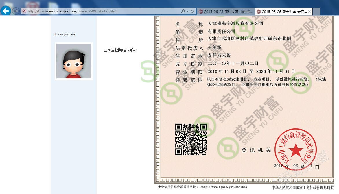 www.shengyucaifu.com和www.shanxigaoshengda.com 2个公司是一家诈骗团伙的网站,之前有人公布过查询域名,相隔2天注册。他们的执照都是假冒冒用他人公司。。。大家帮忙各大论坛预警下,不要被骗。