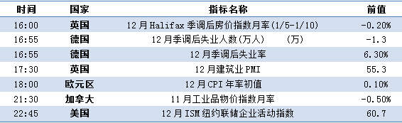 美国12月ISM制造业PMI创六年新低;欧洲创20个月新高。