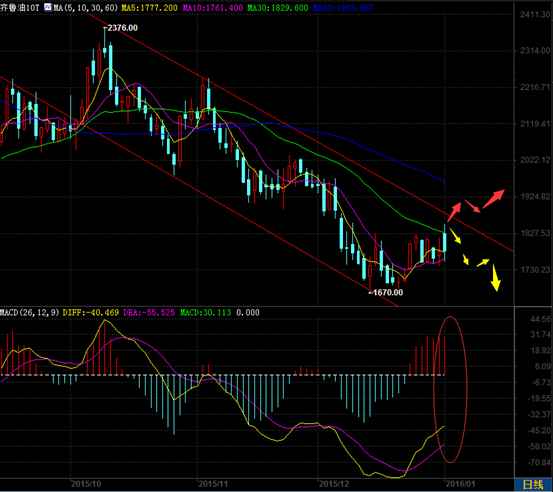 国鑫分析师认为,齐鲁油(重油)跳空高开在1824,延续前一交易日的涨势,但于欧美时段刷新日内高1852和日内低点1754,尾盘收在1781。日K线受到5日、10日均线支撑,上方受到30日均线的压制,走出一根带长头长脚的大阴线。齐鲁油(重油)运行至下行通道的上边缘位置,油价要么承压下行,要么破上轨而逆势上行,具体需要观察今明两日的走势。MACD双线扩口上行,红柱拉长,空方市场中多头力量增强。kdj三线于60附近粘合,待进一步形成死叉,走势或将短线转空。综合看,齐鲁油(重油)进入方向抉择期,交易上顺势而为,日内逢高沽空为主。