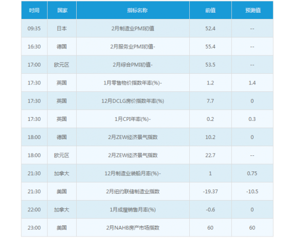 周二美国时段将公布美国2月纽约联储制造业指数、2月NAHB房产市场指数,由于投资者关注度不高,对金价影响或较为有限。