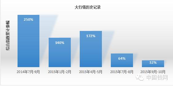 2014年末一波行情看起拔地而起,实际上是经过了大半年时间的沉淀才厚积薄发。而从2014年9月到2015年4月,又是长达半年时间的洗牌才又酝酿出第二波高潮。两波行情之间只存在半年左右的缓冲时间,如此频率放在其他任何资本市场上看都是不可思议的,毕竟市场重新洗牌需要时间,新主力进场收集筹码也不是一天两天就能完成。