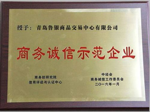 【现货岛3月10日讯】经过商务部信用评级与认证中心、中经会商务诚信工作委员为期6个月的严格审核与仔细甄别,青岛鲁银商品交易中心在大宗商品行业中脱颖而出,被评为“商务诚信示范企业”。