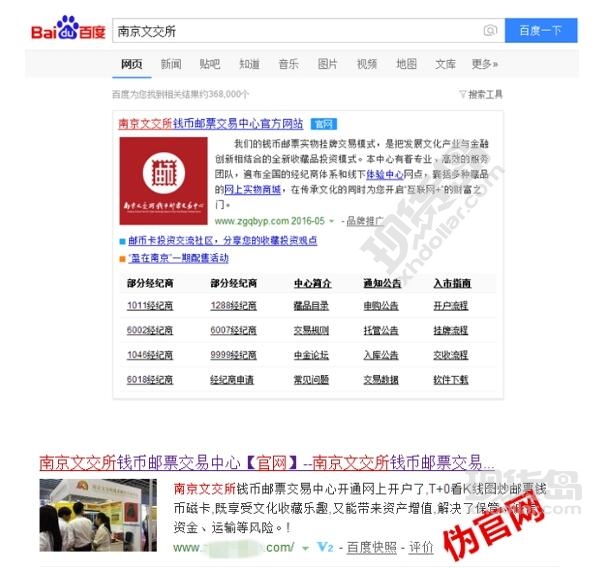 除了上述所说的伪官网、山寨官网,大家在日常搜索中应该会发现,搜索结果往往会出现并不相关的网站信息。比如最常见是就是搜索“邮币卡”,结果出现P2P投资理财类的信息。从本质上讲,邮币卡电子盘与P2P的概念相去甚远,从特点以及交易模式到本质都不一样,不过同样具有金融投资属性。
