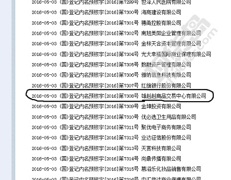 近期,朋友圈里有人晒出一家在国家工商总局预核名的企业,名字叫“雄赳赳商品交易中心有限公司”。有图有真相: