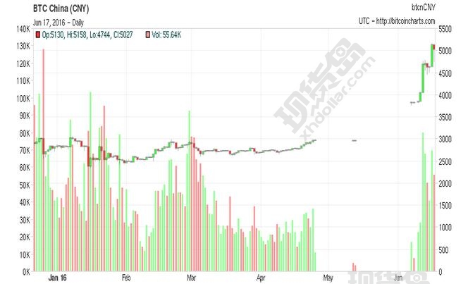 去年12月31日,比特币收盘价为2759.23元,截至6月17日,比特币只用了半年时间涨幅就达到78%。2015年1月,比特币最低价曾到达900元的低位,现在比当时已上涨逾440%。